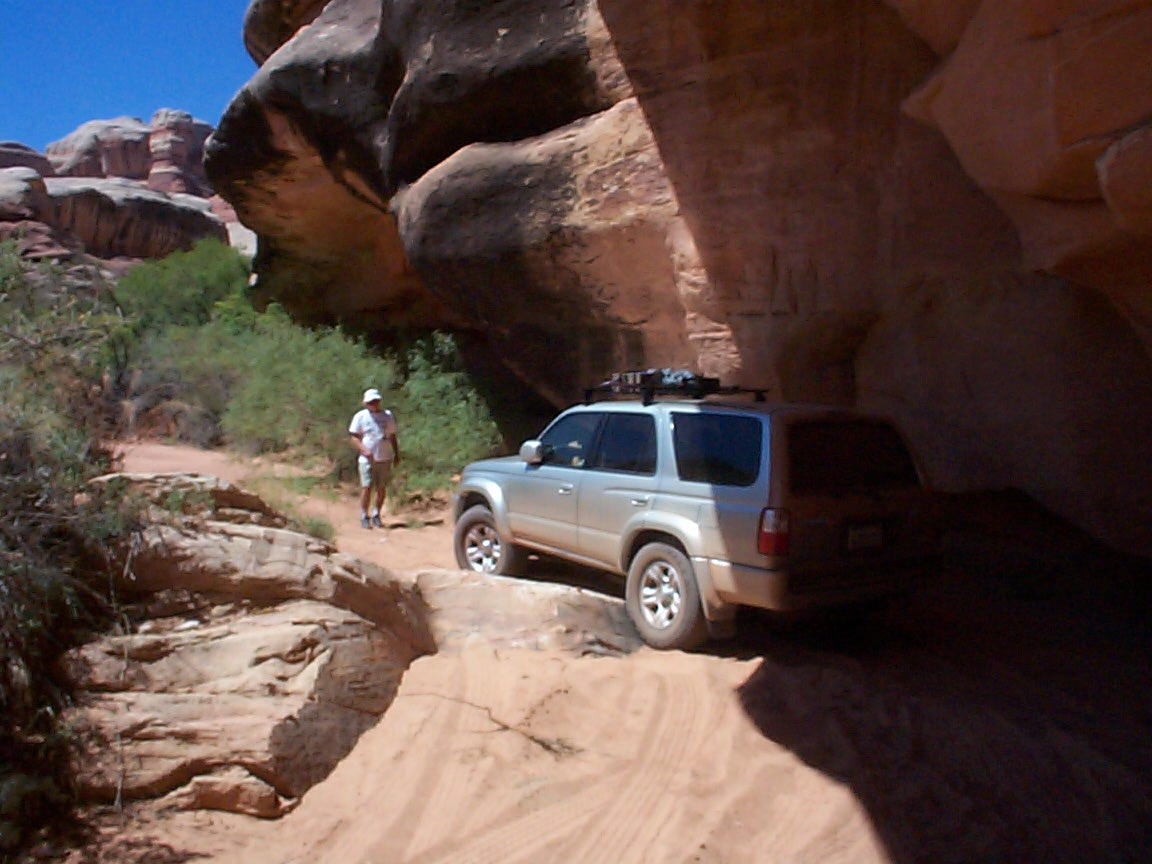 Near the end of the road, there's a section that's a little tricky to get through without scraping paint. Let's just say that the various colors on the rock overhead were not natural. Having a couple spotters helped.